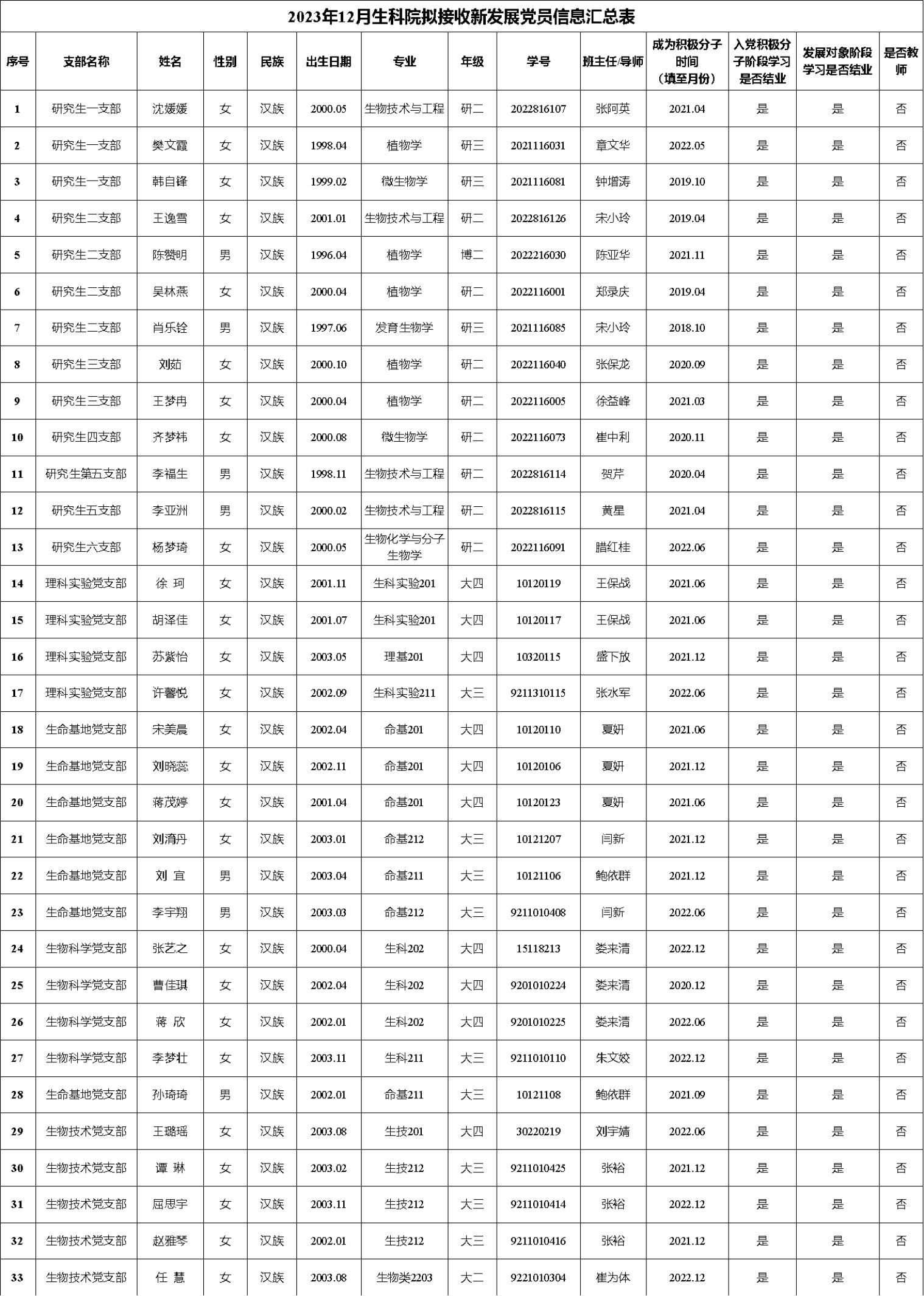 根据必赢626net入口首页学生党员发展工作安排,经由党支部讨论,结合个人成绩、综合测评以及获奖任职等综合表现,经院党委组织答辩、讨论审核,2023年12月拟发展预备党员33名,具体名单如下。