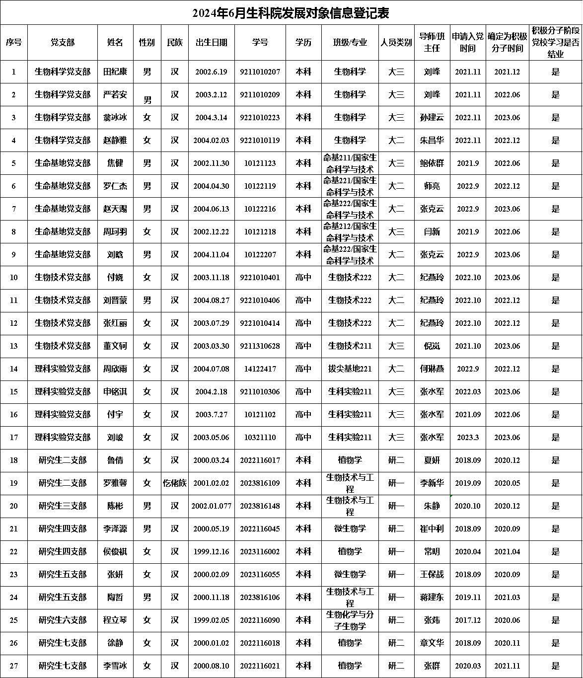 现将本批发展对象名单及档案材料预审结果公示如下,公示时间为2024年6月3日至6月7日。公示期内积极接受广大师生监督,如对发展对象的政治表现、入党材料、发展程序、先进性等各方面存在异议,请反馈至必赢626net入口首页党委。
