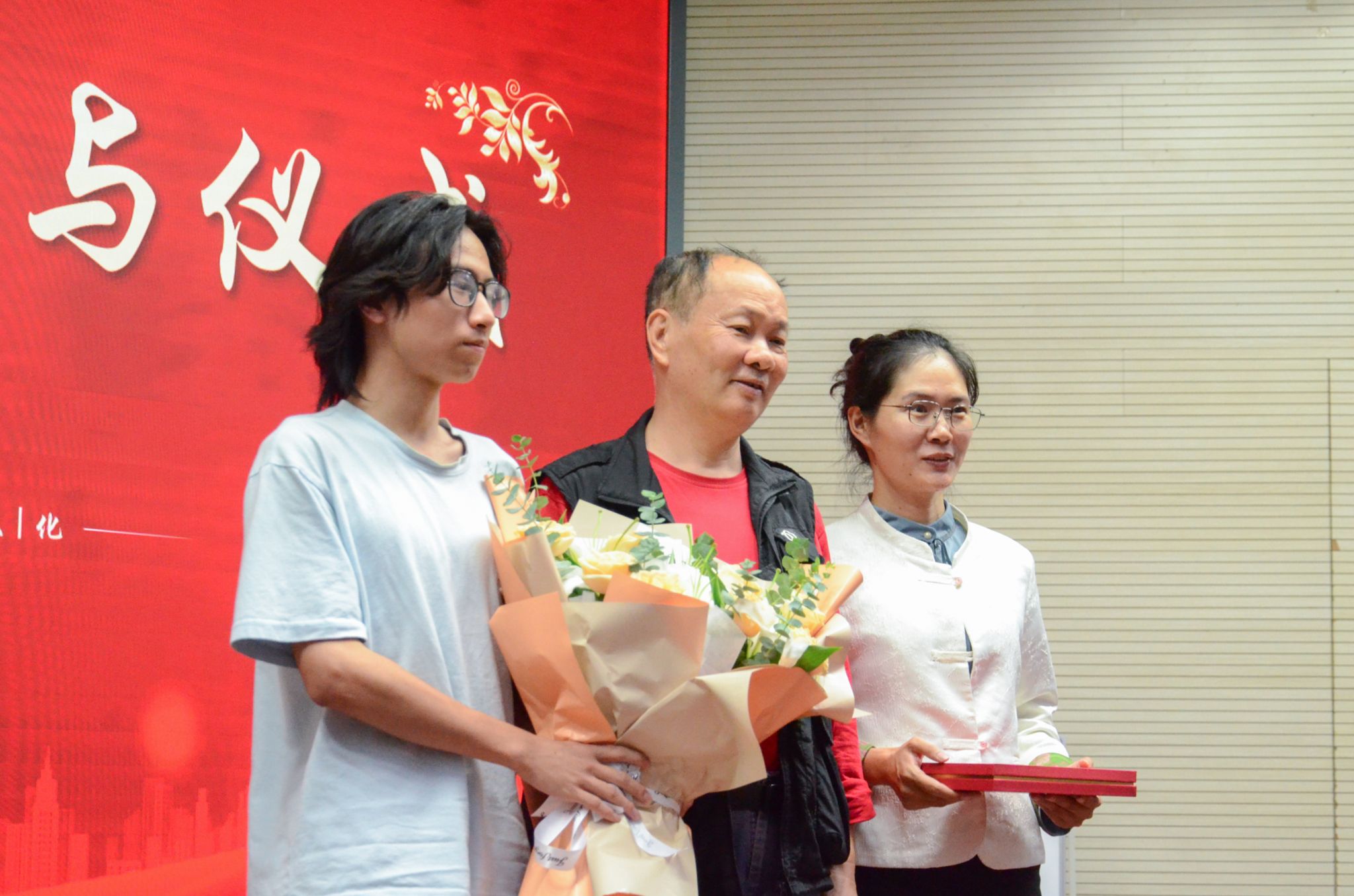 在场的同学们对大师的技艺惊叹不已,纷纷报以热烈的掌声。赵明文、蒋建东代表南农生科院接受蒋劲华赠送的“诚朴勤仁”书法作品,生科院教师学生代表向蒋劲华回赠了鲜花与南农纪念品。